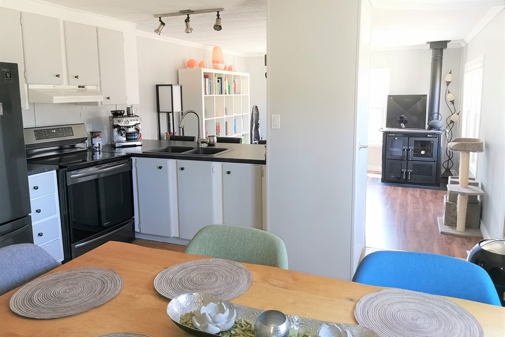 Mobile home renovated 2021: 2 new front door / new water lines / new hot water tank / furnace oil tank / oil furnace / 2 new stainless-steel chimneys for wood stove and for oil furnace, electrical system inspected and updated 2021: 100 Amps panel, 110 / 220 Volts, New roof, siding and new vinyl windows installed in approx. 2018, Originally build 1982 by General Homes Systems Ltd., excellent condition, ready to move in. Excluded from purchase price: wood stove and all appliances, playhouse, sea can. Included: Bathroom mirror cabinet, kitchen furniture, storage shed.